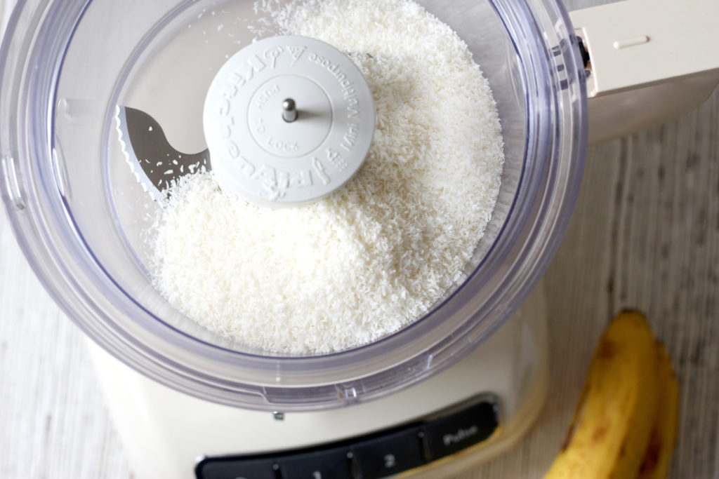 Do food processoru KitchenAid vsypte kokos, přidejte na kolečka nakrájený banán a vše rozmixujte na těsto. Vykrajovátko na cukroví položte na plech, prsty do něj vtlačte připravené těsto a uhlaďte. Já jsem použila tvar srdíčka, ale můžete použít i jakýkoli jiný. Plech vložte do trouby vyhřáté na 180 stupňů a pečte cca 15 minut. Hotová srdíčka nechte vychladnout a poté je pokapejte rozpuštěnou čokoládou.