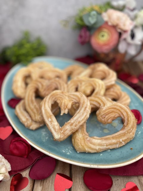 Na polevu vymícháme vaječný likér s moučkovým cukrem. Churros srdíčka namočíme do polevy a necháme je zaschnout.