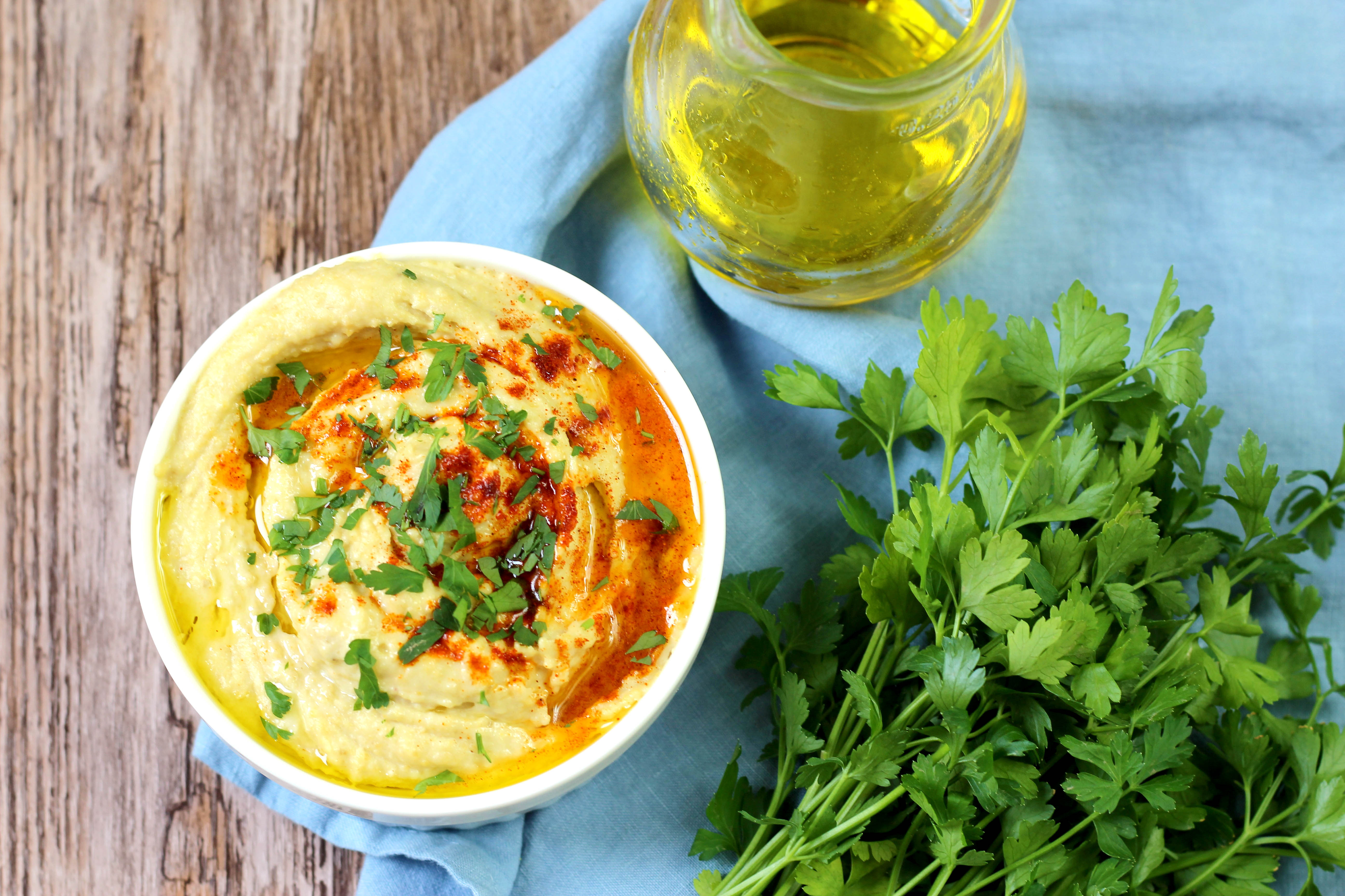 Kdo ještě nikdy nezkusil hummus, má co napravovat. Tahle zdravá pomazánka je skvělým zdrojem železa, proteinů a vlákniny. Hummus se podává studený, nejčastěji s nakrájenou zeleninou, která se do hummusu namáčí. Základem je uvařená cizrna a sezamová pasta tahini, kterou seženete v každé prodejně se zdravou výživou. Pak už jen stačí přidat česnek, olivový olej, citronovou šťávu a máte hotovo. Já osobně přidávám ještě spoustu nakrájené petrželky, která mu dodá tu správnou chuť.