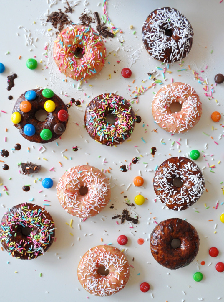 Klasické smažené donuty se obvykle obalují pouze v cukru se skořicí. Donuty pečené v troubě však nabízí celou řadu možností ozdobit si podle svého, a to pořádnou dávkou polevy a různobarevných "ozdobiček".