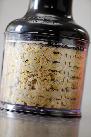 Mixujte tak dlouho, dokud se nezačnou kousky arašídů postupně lepit k sobě a vytvářet hrudky... Pokračujte v mixování, dokud směs nezačne být hladká. (obr. 5) Poté přidejte med a sůl podle chuti, a ještě chviličku mixujte, dokud se vše nespojí.