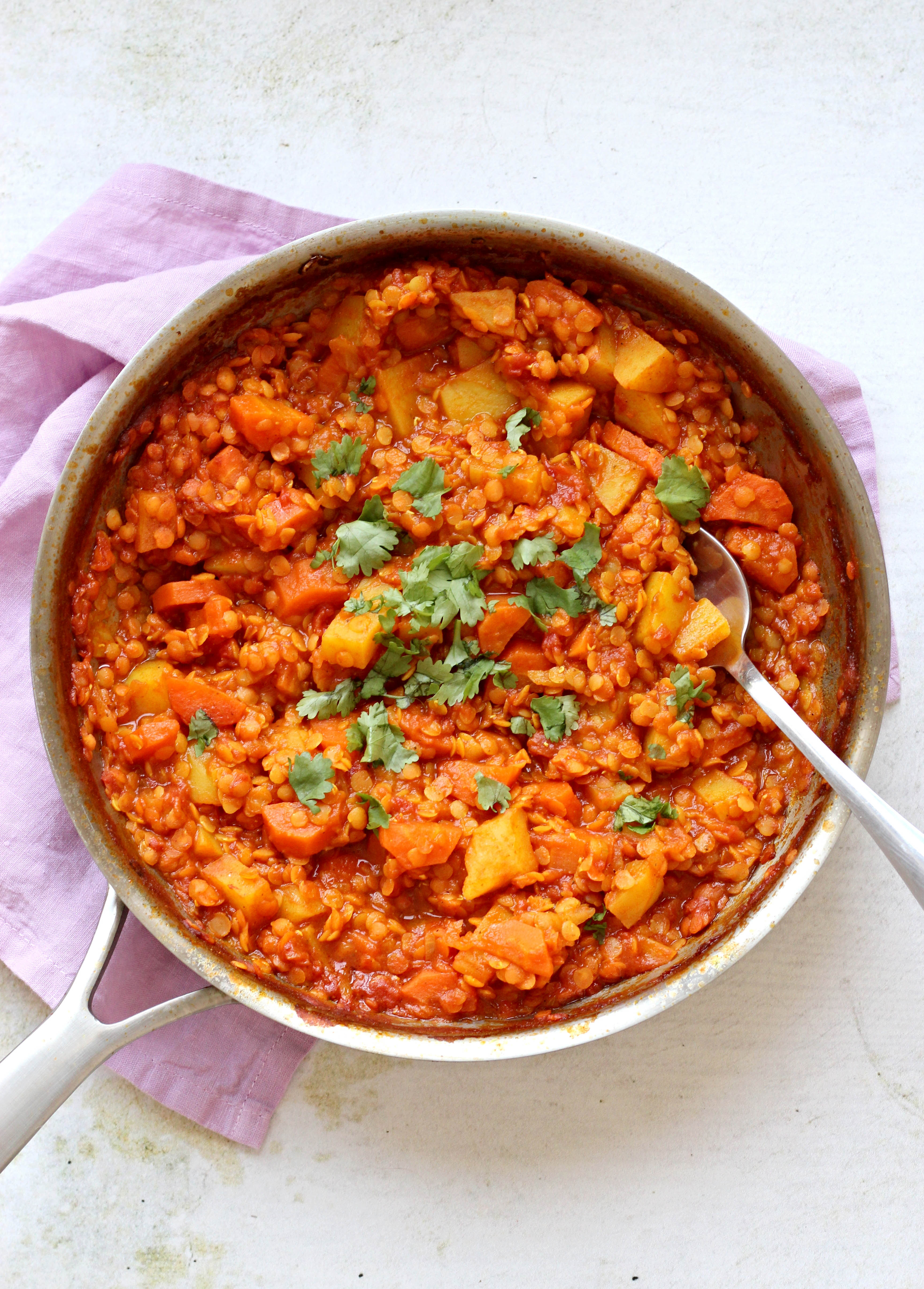 Miluji jídla, která jsou jednoduchá a nevyžadují moc práce. Jedno z nich je tohle čočkové kari, které se vaří v podstatě samo. Stačí naházet všechny suroviny do jedné pánve a těšit se na výsledek.