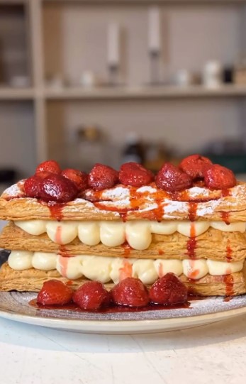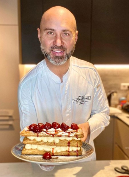 Italskou varinatu tradičního francouzského dezertu pro vás připravil Andrea Ena z restaurace „Sapori Italiani“. Jedná se o vrstvený dezert z lístkového těsta doplněný krémem a ovocem.