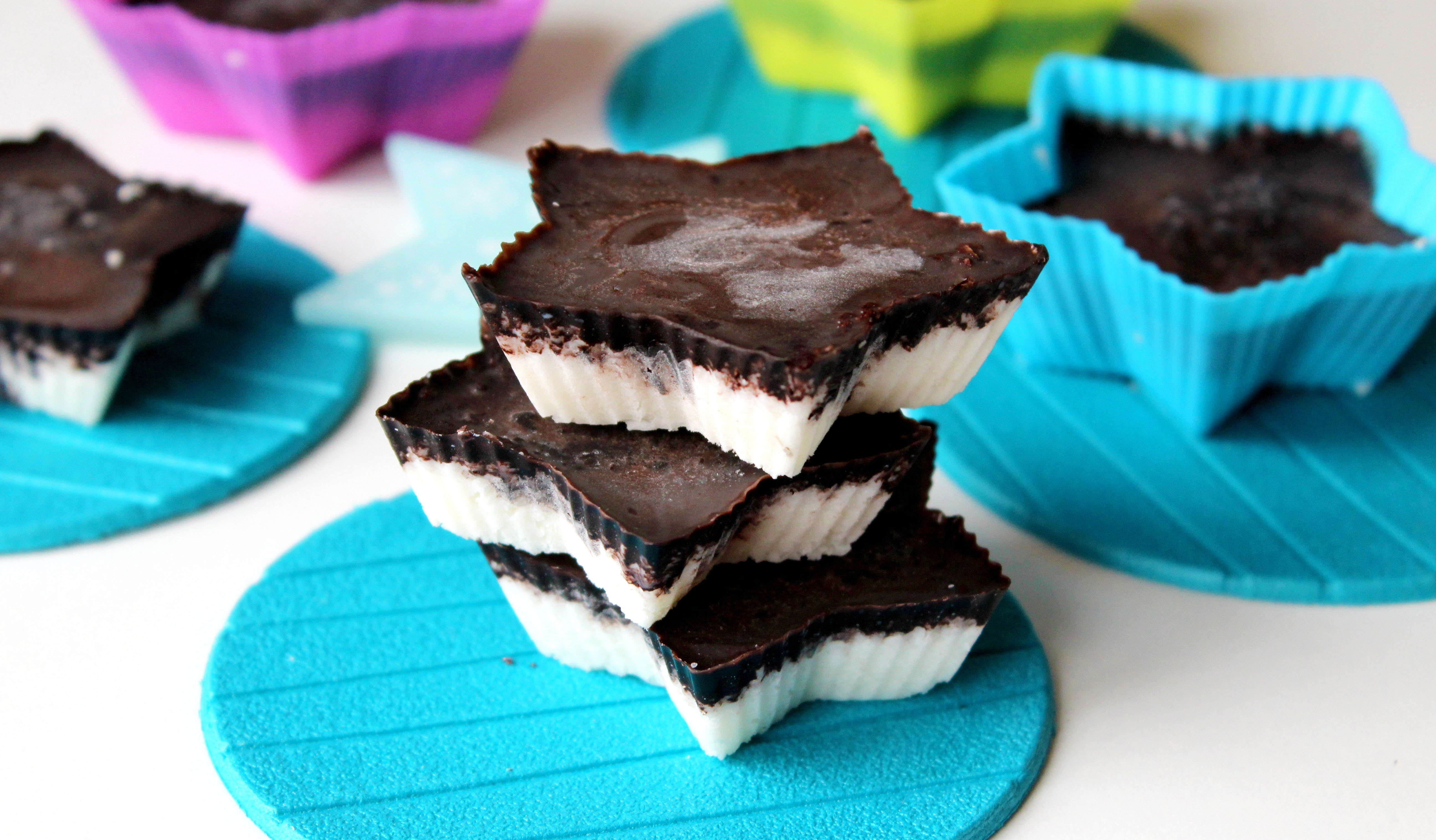 Do food procesoru KitchenAid nasypejte strouhaný kokos, přidejte lžíci kokosového oleje a postupně vše začněte mixovat. Během mixování přilévejte kokosové mléko a mixujte, dokud se nevytvoří jemná hmota. Kokosovou hmotu vtlačte do připravených silikonových formiček (např. na muffiny). V hrnci rozehřejte 2-3 lžíce kokosového oleje, přidejte kakao, stévii a vše pořádně promíchejte. Rozpuštěnou čokoládu nalijte opatrně na vršek kokosové hmoty, formičky nechte ztuhnout v mrazáku a máte.