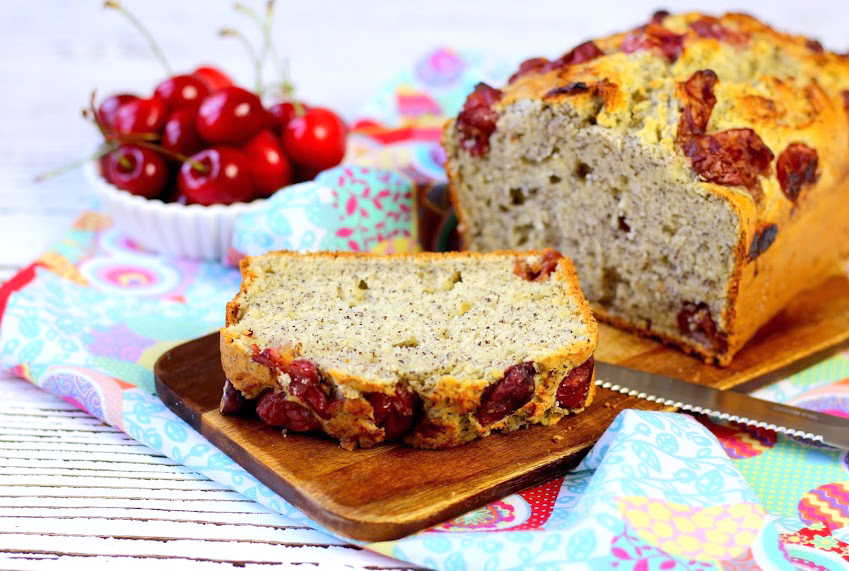 Na trzích jsem si koupila košíček nádherných zralých třešní a přemýšlela jsem, jak je využít. Klasickou bublaninu jsem dělat nechtěla a tak mě napadlo, že bych upekla třešňový chlebíček. A protože jsem jej chtěla něčím ozvláštnit, přidala jsem do těsta mletý mák. A tak vznikl tenhle jednoduchý makovo-třešňový chlebíček :-) Chutná skvěle jak tak samotný nebo s domácí marmeládou a hrnkem horkého kakaa.