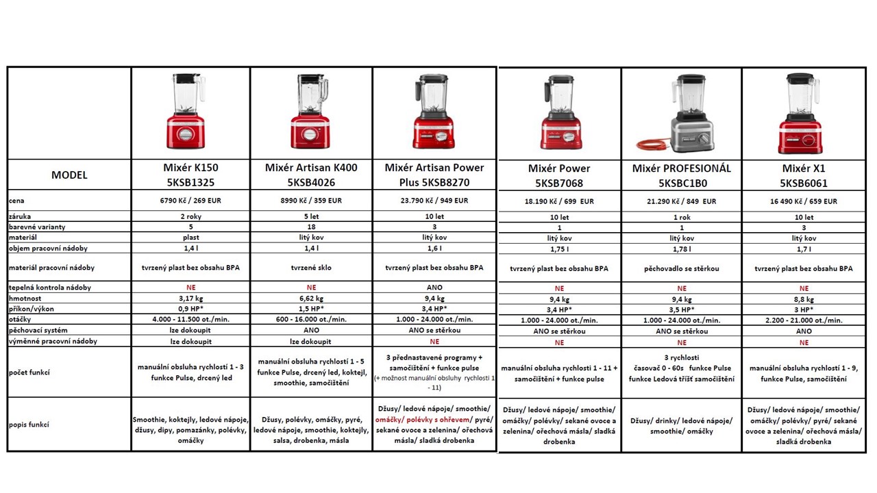 A pokud si přeci jen chcete porovnat parametry jednotlivých mixérů, níže naleznete oblíbenou a notoricky známou tabulku :-)