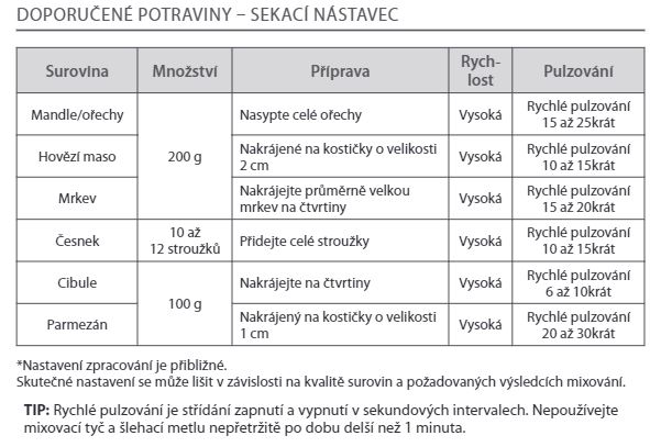 Sekací nástavec pro sekání bylin, ořechů, sýrů a dalších surovin.