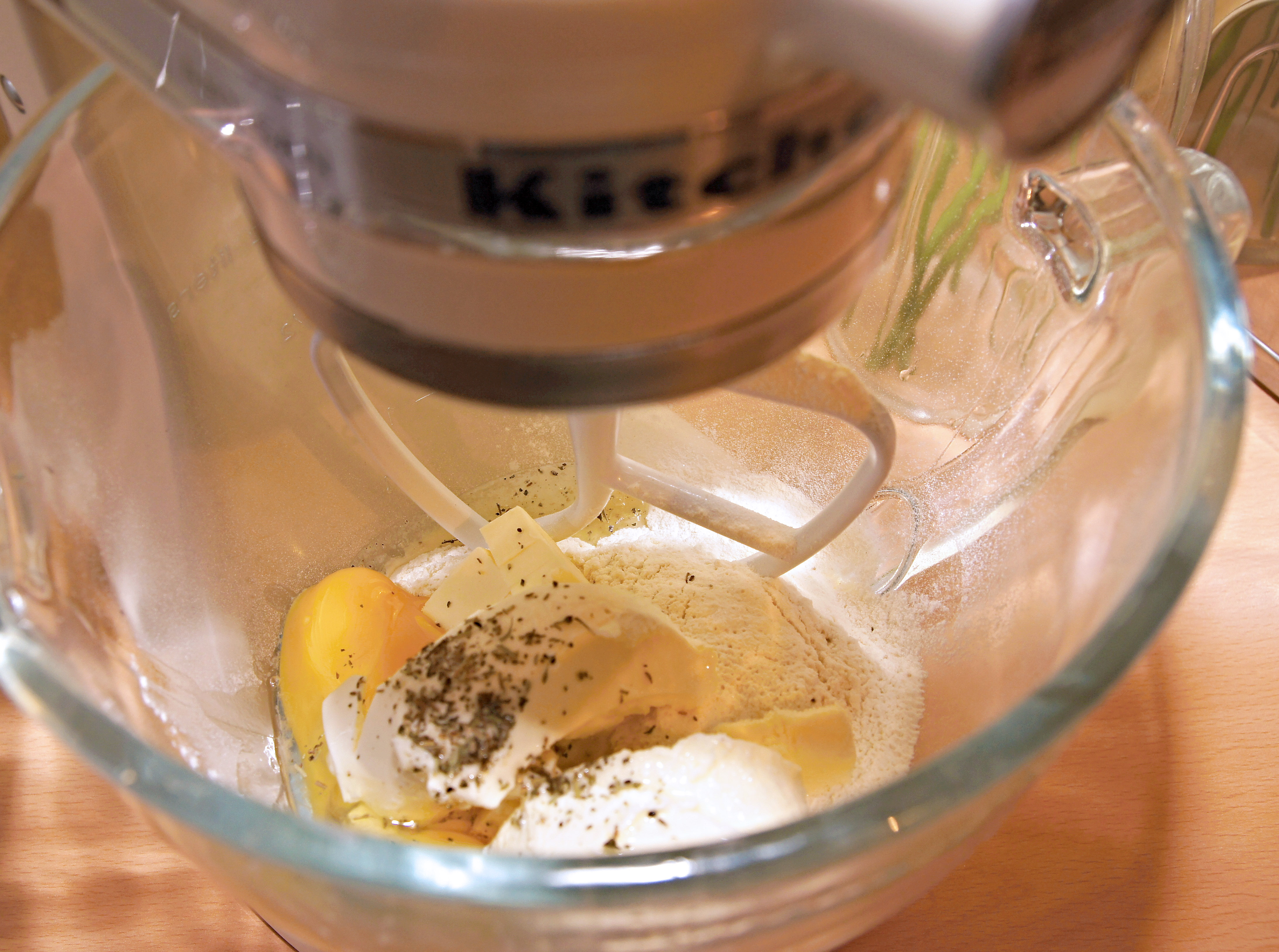 V míse kuchyňského robota KitchenAid smíchejte všechny suroviny v kompaktní těsto. To následně zabalte do igelitového sáčku a uložte na hodinu do lednice. Vychlazené těsto rozdělte na šest až sedm dílů, podle požadované velikosti rohlíčků. Troubu rozehřejte na 200 stupňů a přichystejte si plech vystlaný pečícím papírem. Na pomoučněném vále každý díl vyválejte v kulatou placku, a tu následně rozdělte na 8 dílů (trojúhelníčků). Vůbec neřešte nepravidelné konce, ty smotáte do rohlíčku a nikdo je neuvidí.