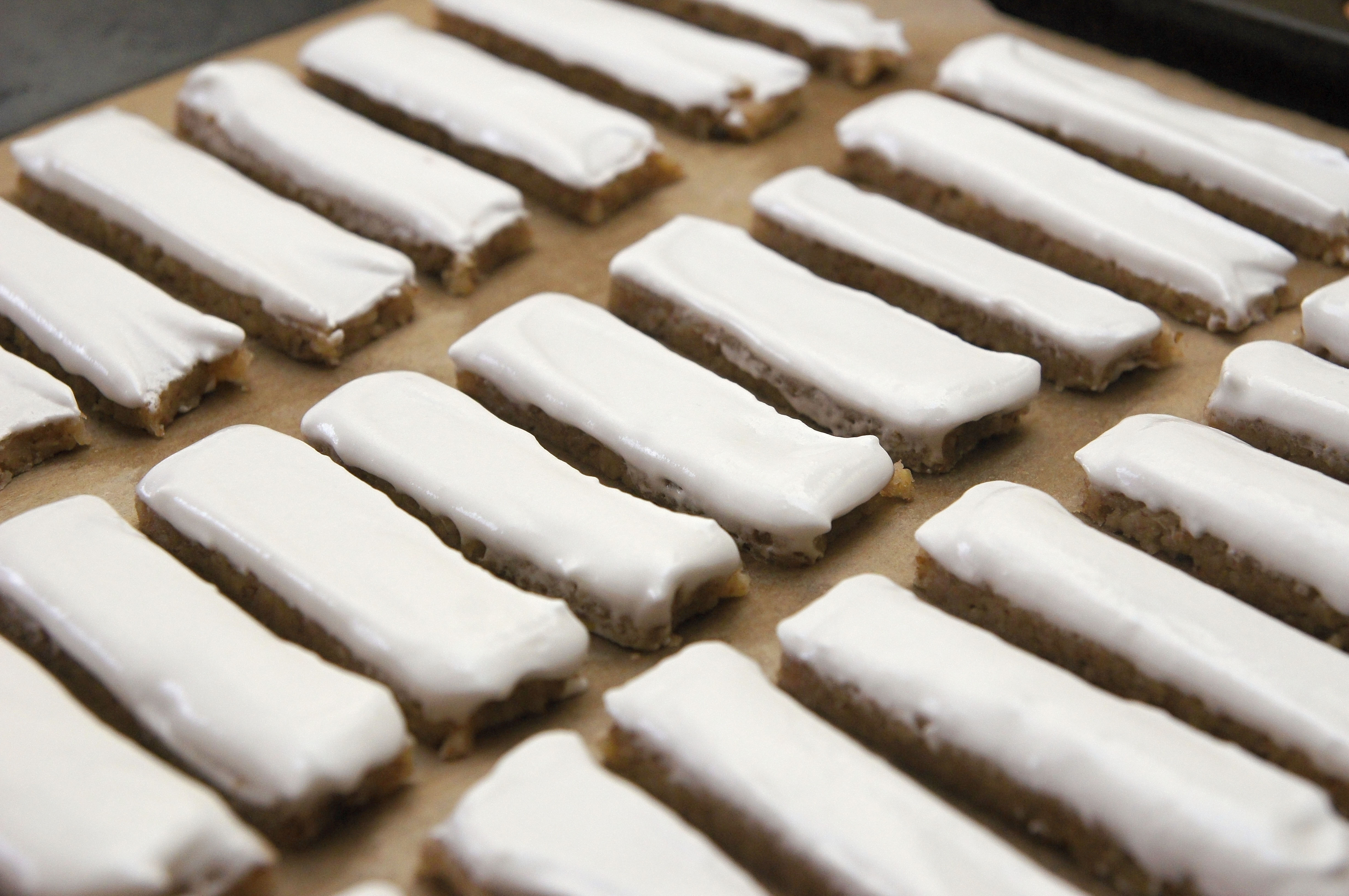 OŘECHOVÉ TYČINKY S BÍLKOVOU POLEVOU