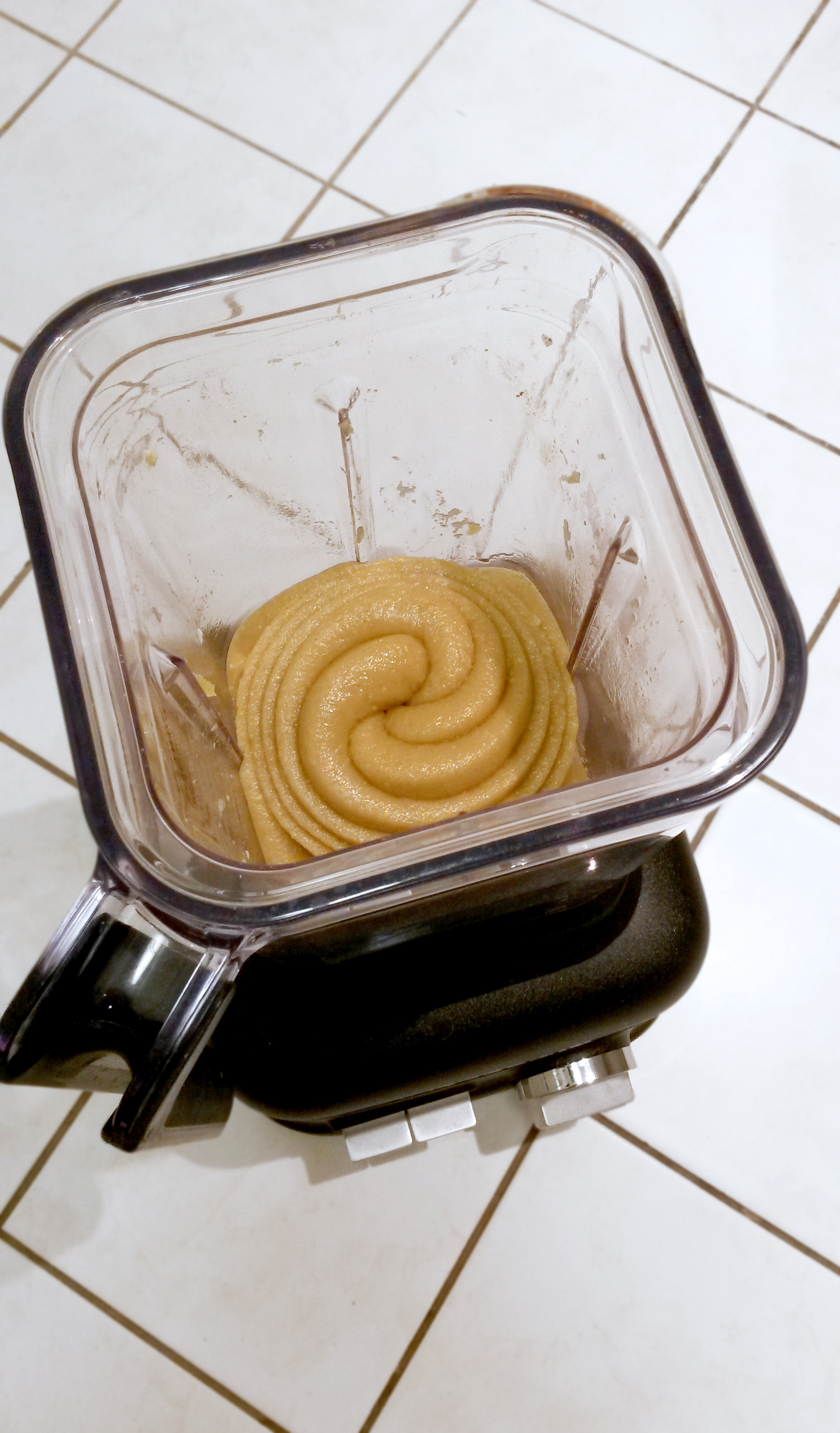 Do nádobky vsypu 750 g arašídů, přidám lžíci kokosového másla (skvěle chutná také olej z vlašských oříšků nebo lněný olej), dále přidám 30 g kvalitního BIO kakaa (na kakau nešetřete, je to hodně znát!), 100 g třtinového nerafinovaného cukru a případně špetku skořice či vanilky, přiklopím víkem, zasunu pěchovadlo a nejdříve pomalinku zpracuji při programu "čištění", který používá přesně to správné kolísání otáček pro rovnoměrné smíchání surovin, zhruba v polovině programu vypnu, přepnu na program drcení ledu, a nechám krasavce dokončit dílo :-)