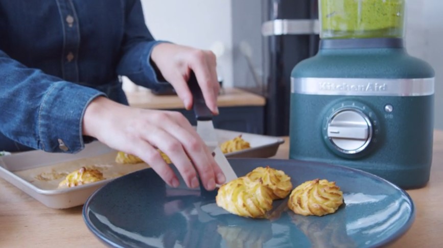 Což takhle vyzkoušet něco úplně nového. Recept na nadívanou vepřovou panenku s delikatesou francouzské kuchyně – pommes duchesse alias bramborovými pusinkami.