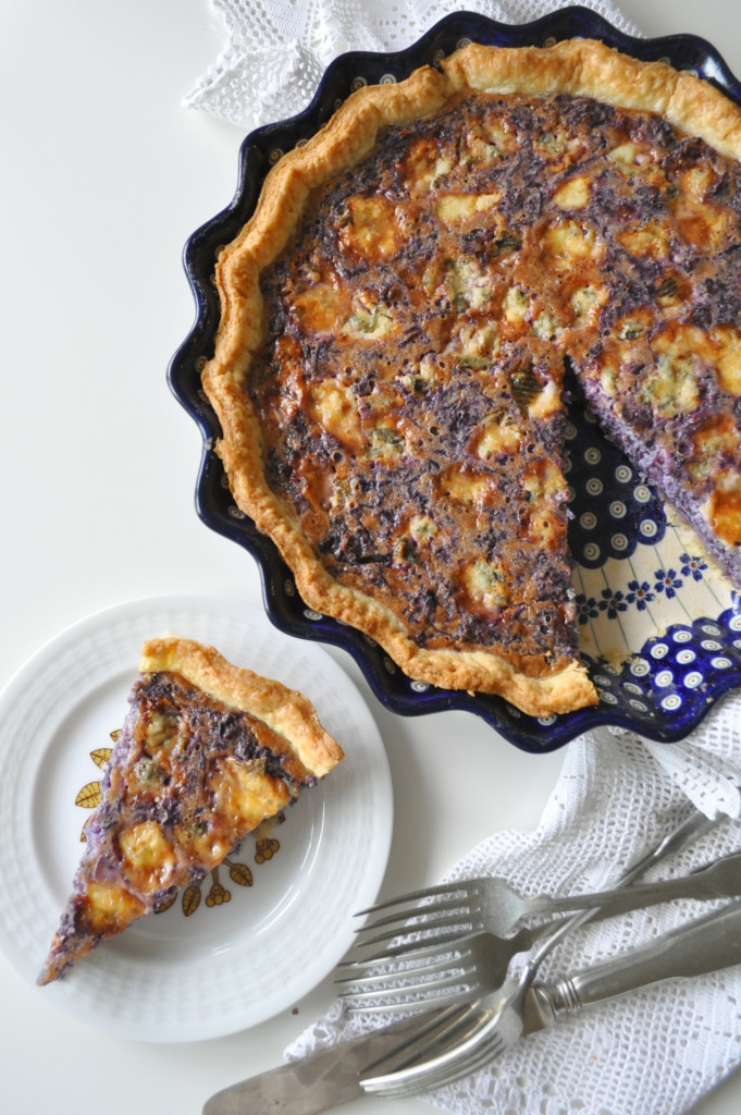 Hitem mého sezónního pečení jsou u nás koláče z křehkého těsta. Především proto, že nabízí skutečně nekonečné množství kombinací a variací! Může být na sladko nebo na slano. V dnešním koláči se dokonale spojily jak sladké tak i slané chutě. Nasládlé, téměř zkaramelizované zelí, výrazný plesnivý sýr a slané těsto. Pokud vlastníte food processor KitchenAid, vytvořte si těsto do zásoby. Kdykoli pak budete mít chuť na koláč, příprava vám nebude trvat ani deset minut :-)