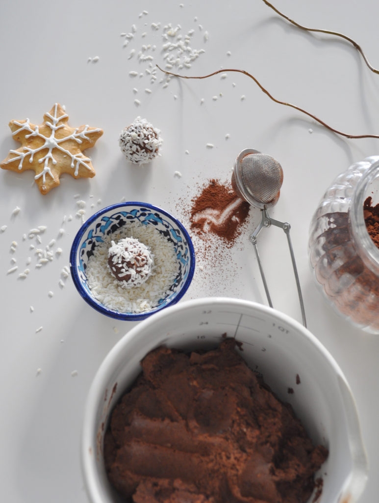 Těsto pak přeložte do mísy, přikryjte potravinovou fólií a dejte minimálně na hodinu do chladu, aby ztuhlo. Poté pomocí lžíce nebo rukama tvarujte kuličky a obalujte je v kokosu.
