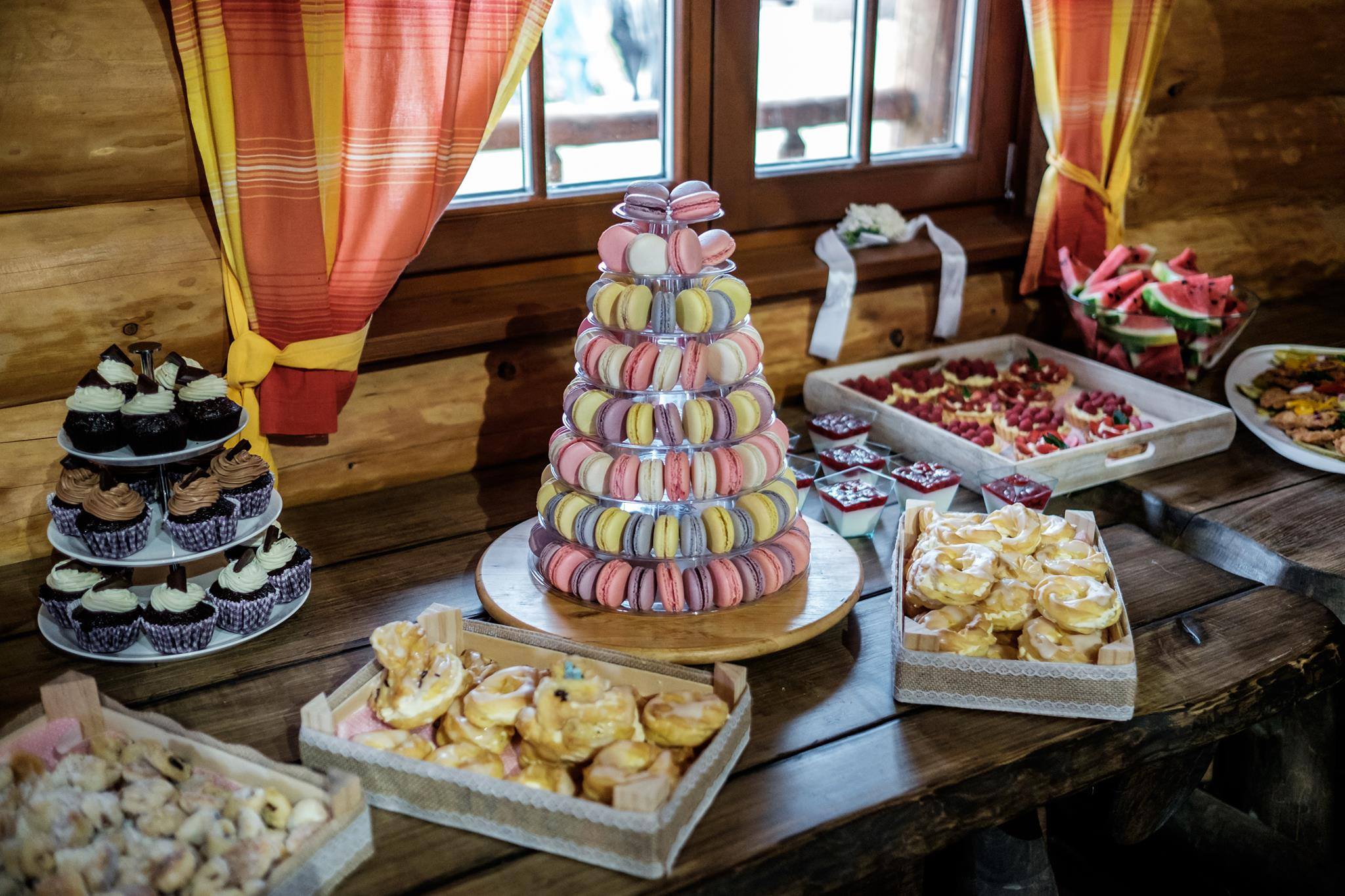 Nevěsta mě požádala, zda bych mohla přijet pyramidu naaranžovat, což pro mě bylo velkým potěšením. Hned po příjezdu na místo na mě dýchla nádherná atmosféra, všichni byli slavnostně oblečení, ale měli i krásnou slavnostní náladu. Na mě už čekalo místo určené pro pyramidu, střed svatebního stolu ve tvaru T. Když jsem z přepravky vytahovala první makronku, ruka se mi třásla.
