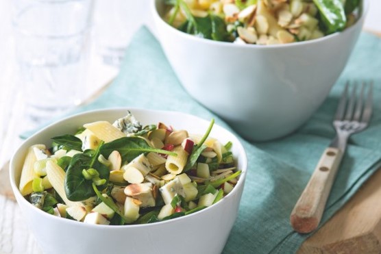 TĚSTOVINOVÝ SALÁT S JABLKY, SÝREM A ŠPENÁTEM