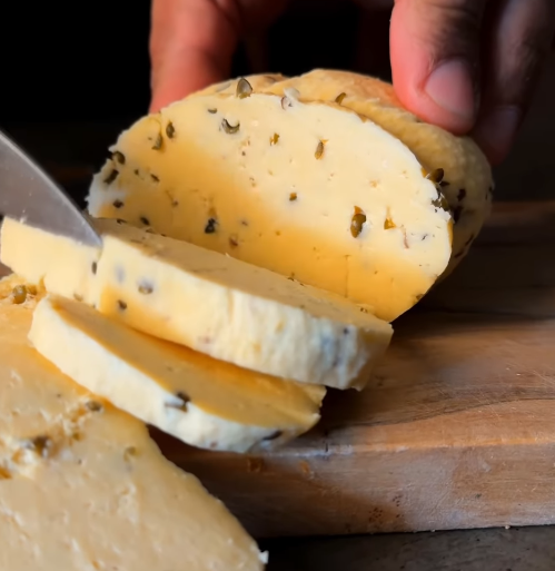 2) Směs přelijte do menšího hrnce, pomalu vařte na nízkém stupni a stále míchejte. Vařte asi 30 minut - směs se začne pomalu srážet a tvořit hrudky. Do sražené hmoty vmíchejte nasekaný nakládaný zelený pepř.