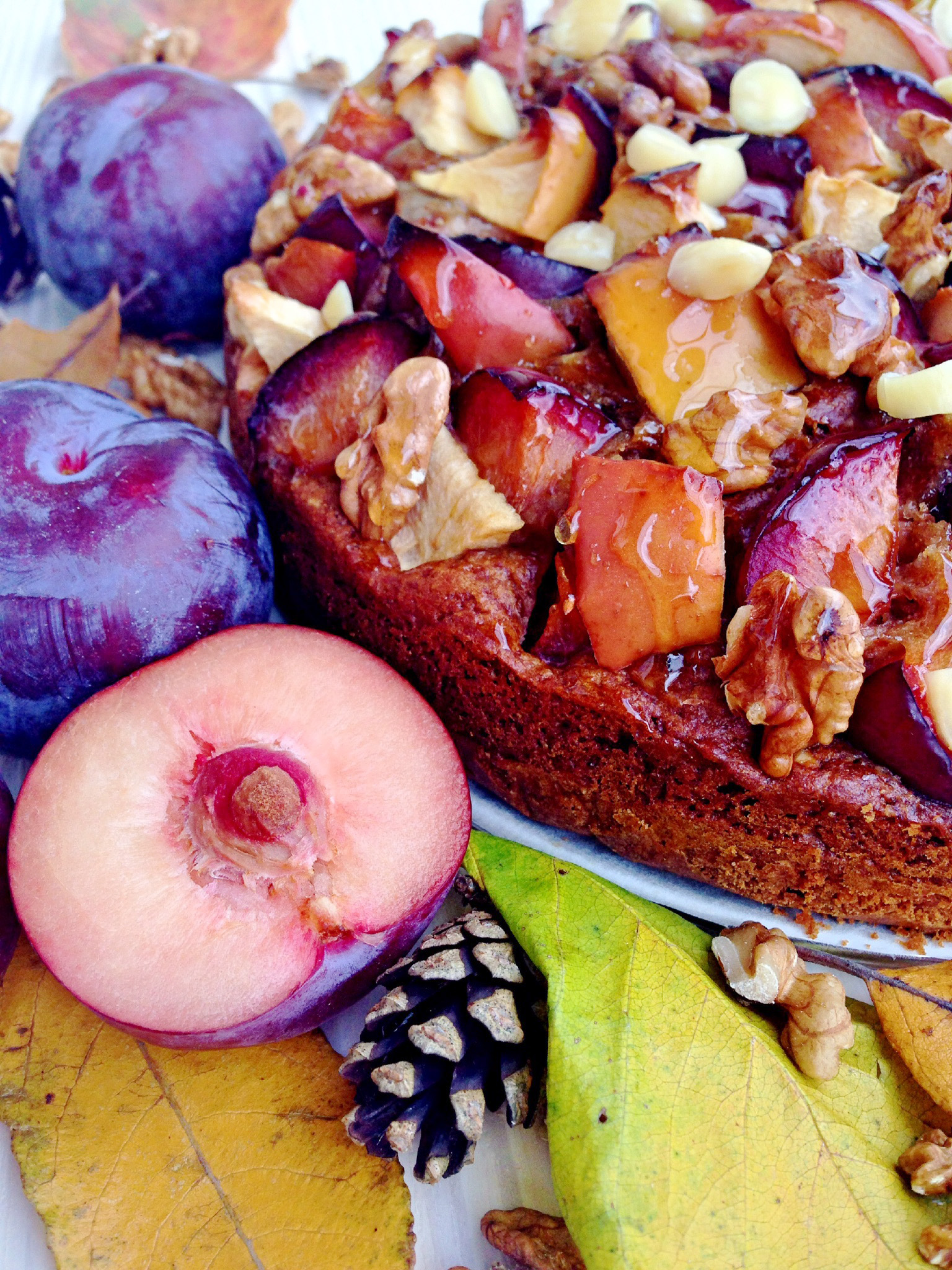 ŽITNO - MANDLOVÝ KOLÁČ S OVOCEM A MEDEM