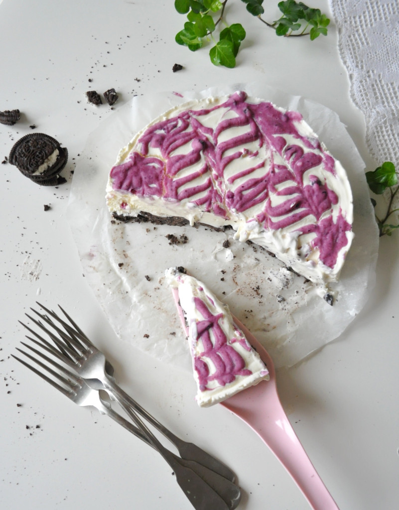 Oreo rozdrťte ve food processoru KitchenAid, přidejte změklé máslo a nechejte zpracovat do kašovité hmoty. Tu pak rovnoměrně rozprostřete do dortové formy s nepřilnavým povrchem a dejte do lednice ztuhnout.