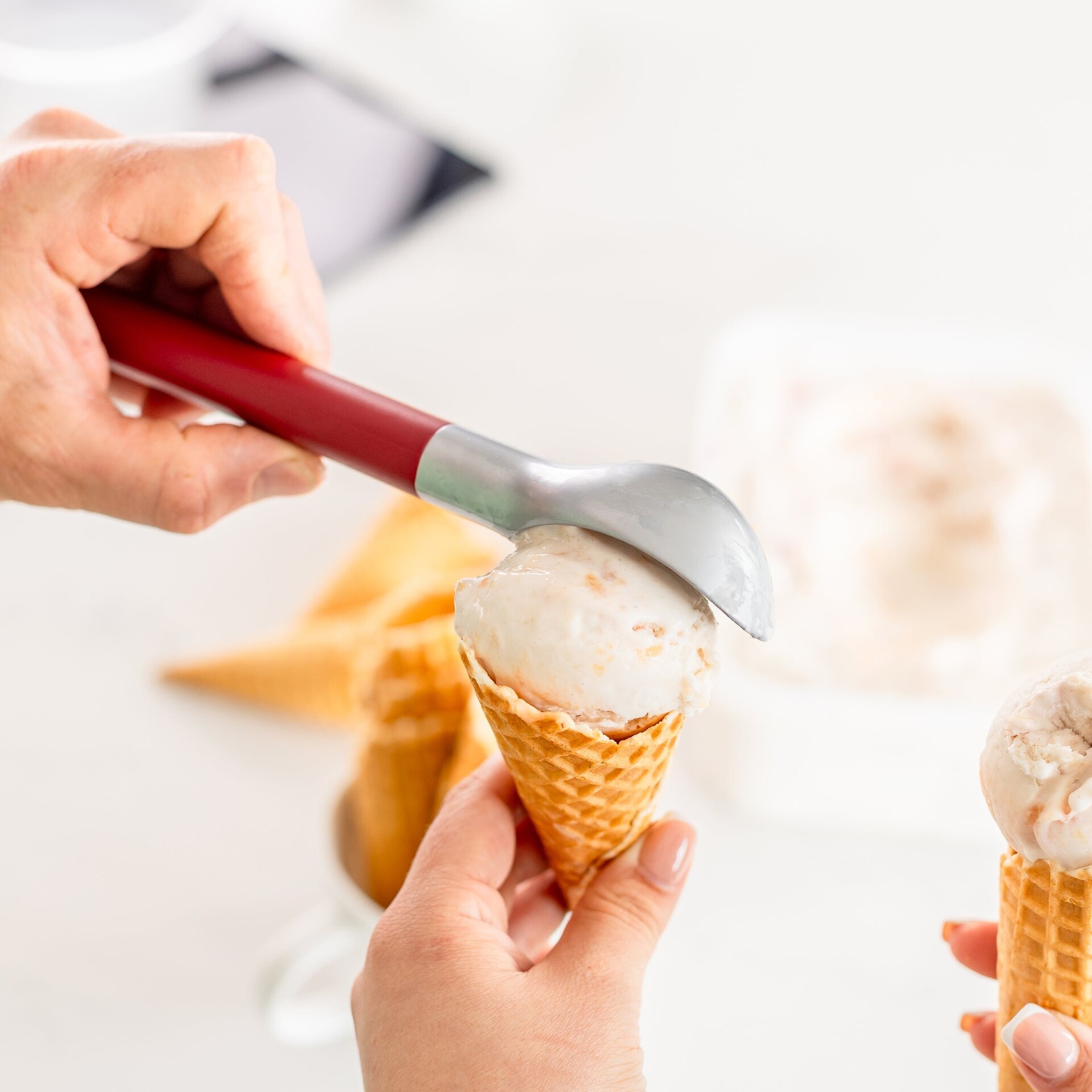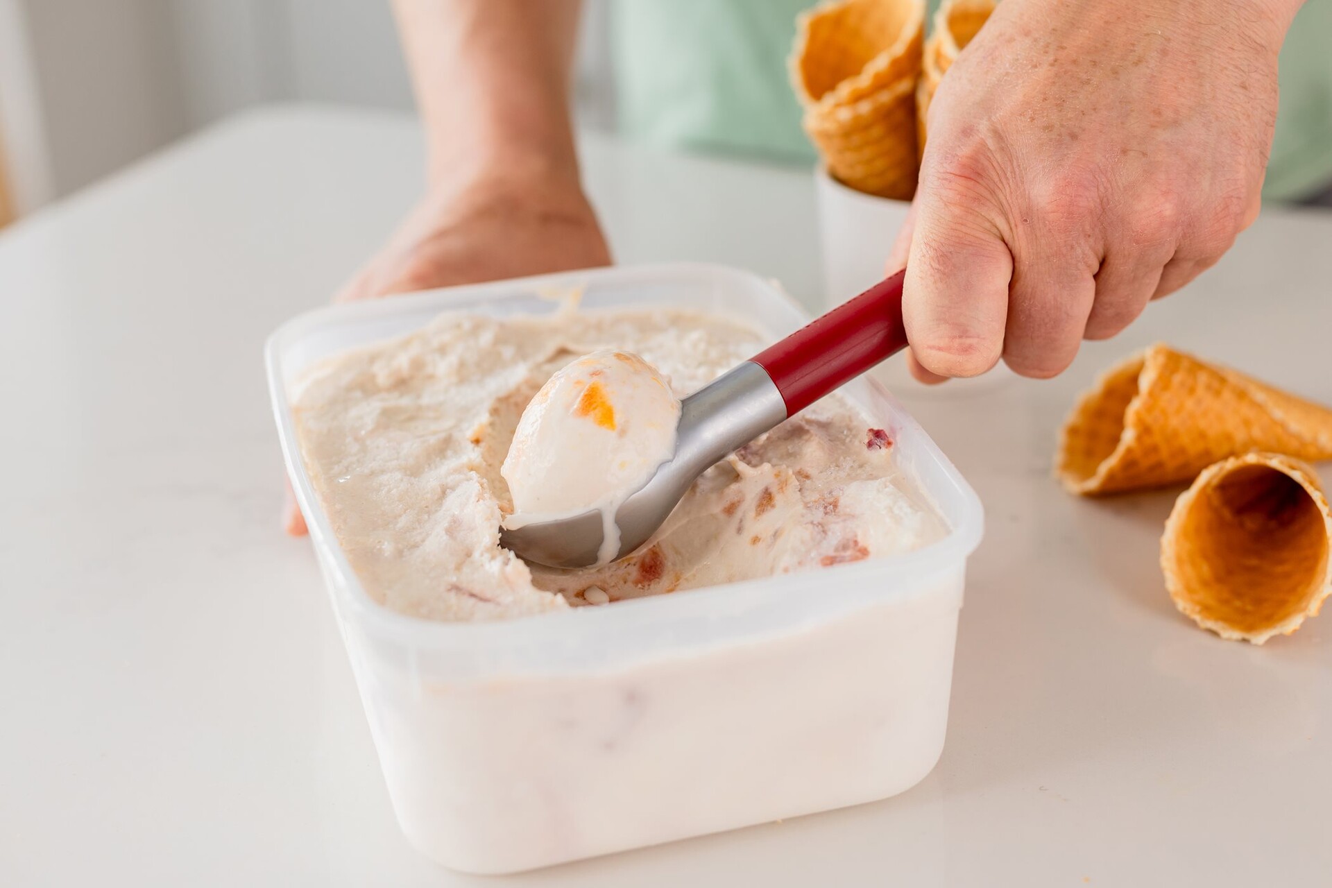Speciálně tvarovaná litá hlava umožňuje rychlé a snadné nabírání tvrdé zmrzliny.