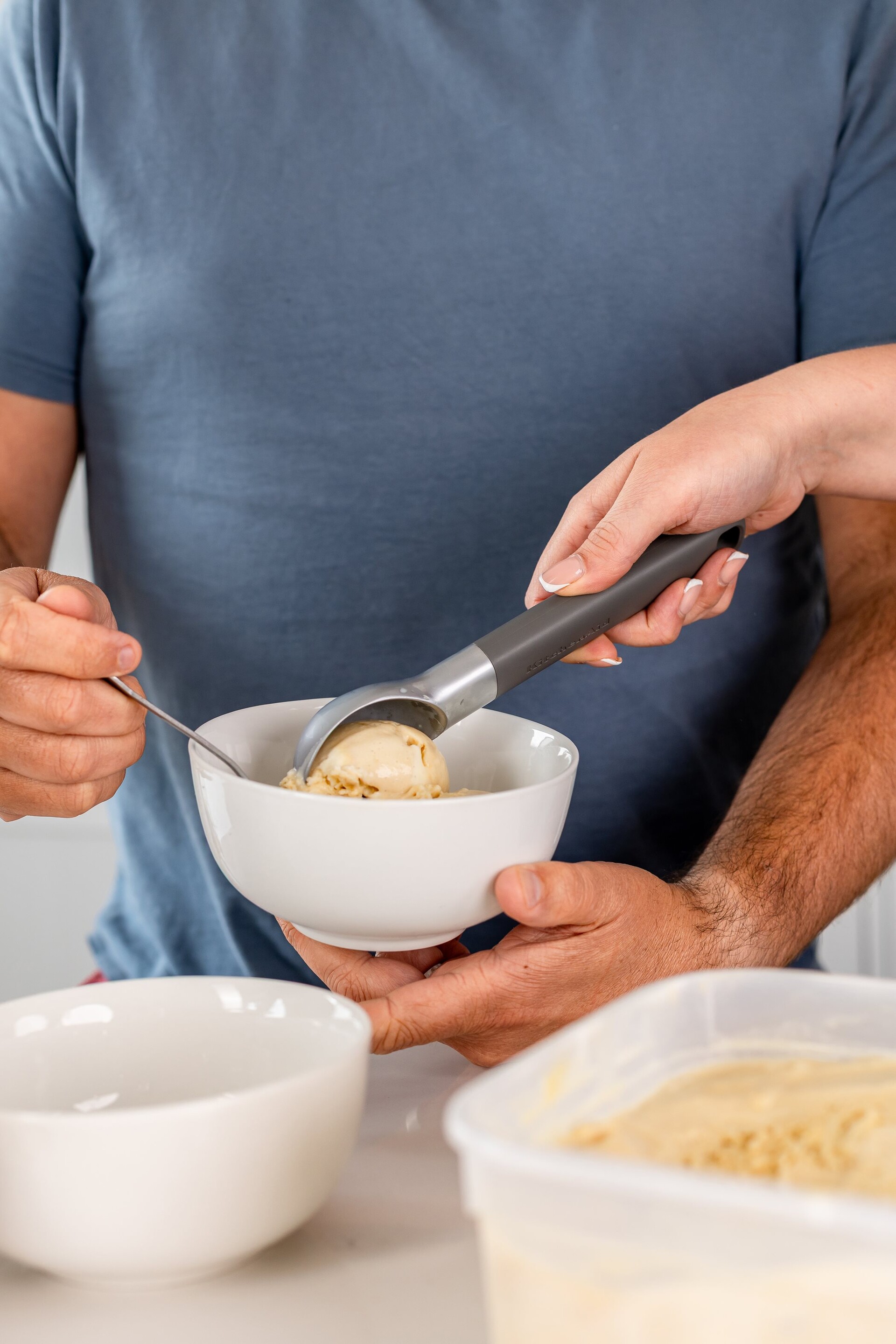 Lžíce na zmrzlinu je nezbytnou součástí kuchyně. Určena pro snadné nabírání a formování porce zmrzliny a podobných dezertů do atraktivních kulatých tvarů bez námahy.