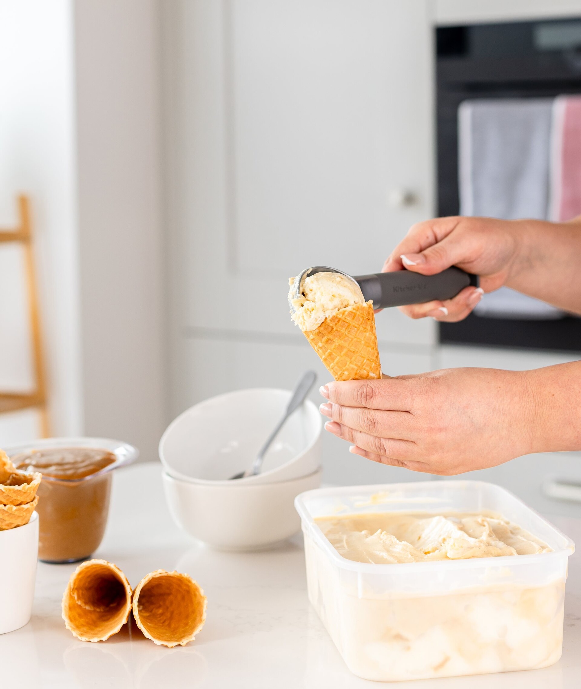 Lžíce na zmrzlinu je nezbytnou součástí kuchyně. Určena pro snadné nabírání a formování porce zmrzliny a podobných dezertů bez námahy.