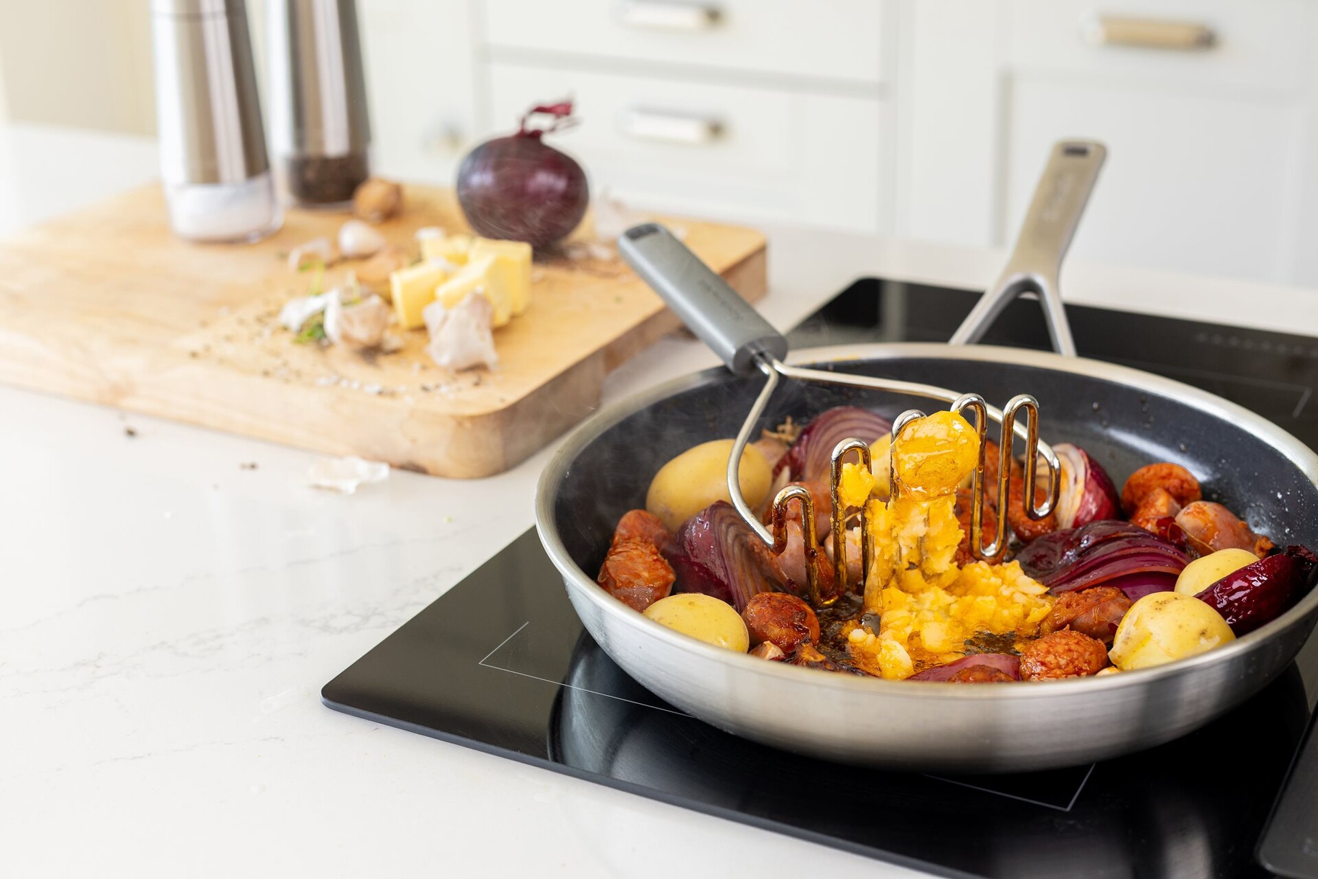 Mačkadlo na brambory je nezbytnou součástí kuchyně. Je pomocníkem při přípravě hladké bramborové kaše, zeleniny nebo ovoce bez námahy.