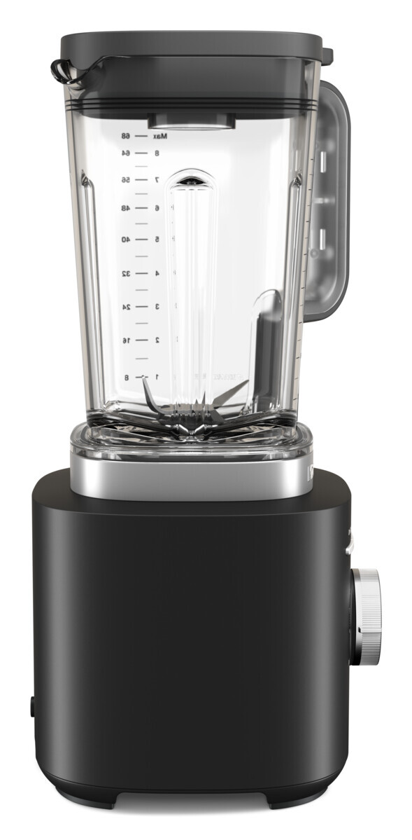 Není třeba nijak otáčet nádobou. Intuitivní sestava nádoby poskytuje stabilitu při vysokých rychlostech v jediném prostém kroku. Žebrované provedení nádoby vhání obsah zpět na nože, takže se při mixování vytvoří silný vír, díky kterému se zpracují i tuhé přísady. Lze mýt v myčce na nádobí.