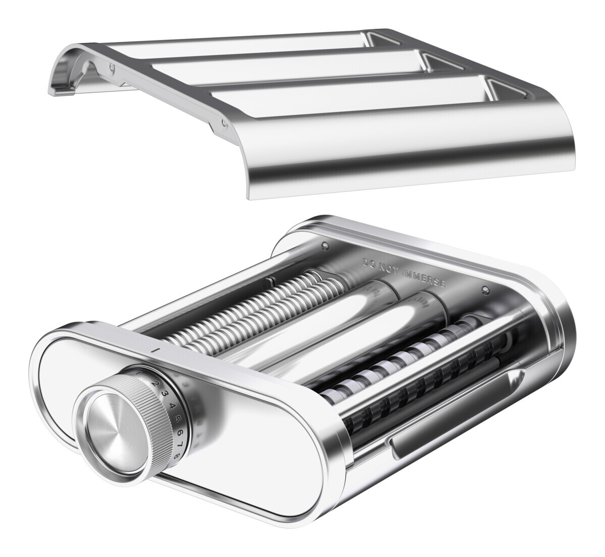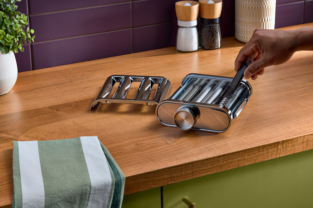 Sada 3 nástavců z kvalitní nerezové oceli pro hladké rozvalování a čisté krájení těsta na těstoviny. Vytvoříte až 140 mm široké plátky, přičemž si sami zvolíte tloušťku těstovin. Snadno a rychle vyrobíte několik druhů těstovin – Lasagne, Tagliatelle, Fettuccine, široké či vlasové nudle.