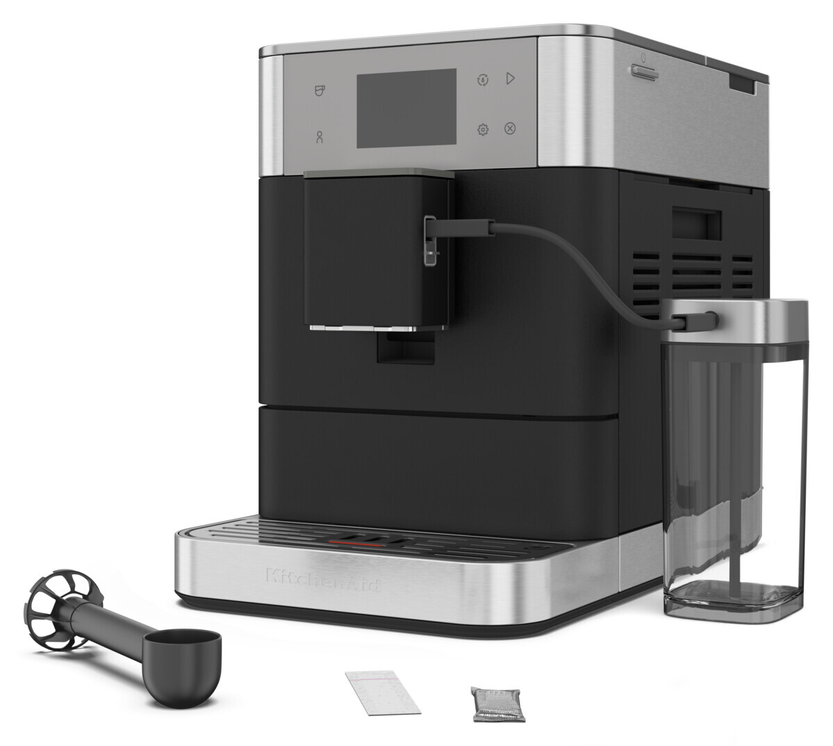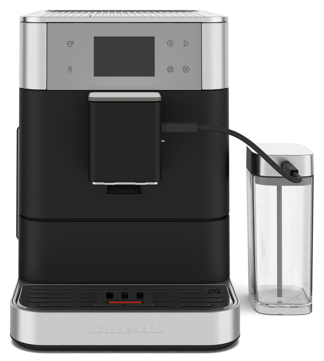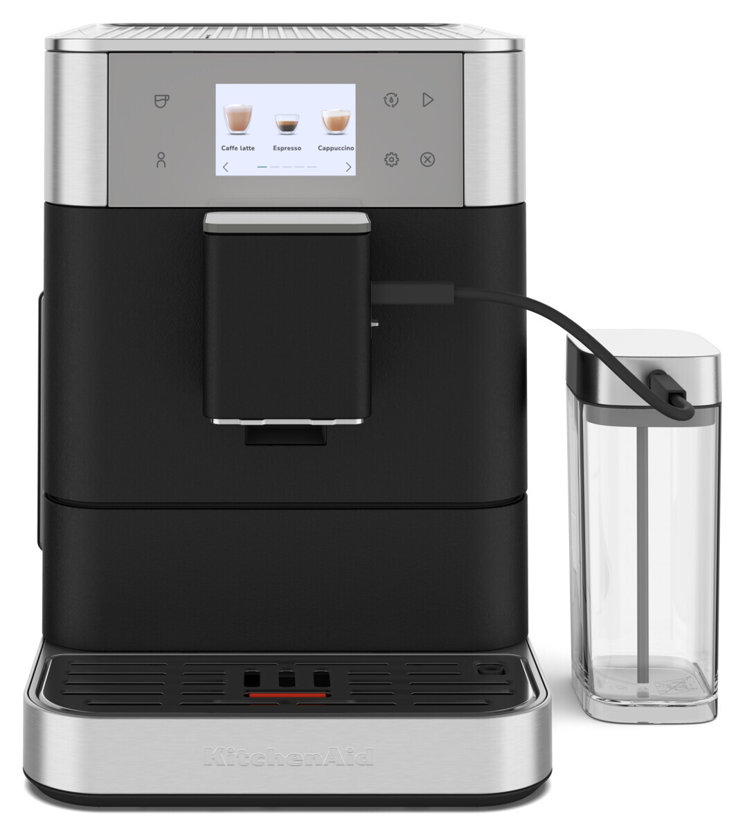 Objevte svět kávy KitchenAid s plnoautomatickým kávovarem KF7. Připravte si svou oblíbenou kávu rychle, snadno a tiše. Certifikace Quiet Mark zaručí klidné a tiché ráno. Díky intuitivnímu barevnému dotykovému displeji si můžete vybrat z více než 20 receptů, včetně espressa, macchiata, americana, latte a mnoha dalších. Přizpůsobte si kávu přesně podle své chuti – jedna dávka s možností úpravy intenzity kávy a teploty. Experimentujte s pořadím a množstvím mléka a kávy ve svém nápoji. Chcete si uložit svůj dokonalý nápoj? Můžete si vytvořit až 4 uživatelské profily s oblíbenými nápoji pro rodinu a přátele.