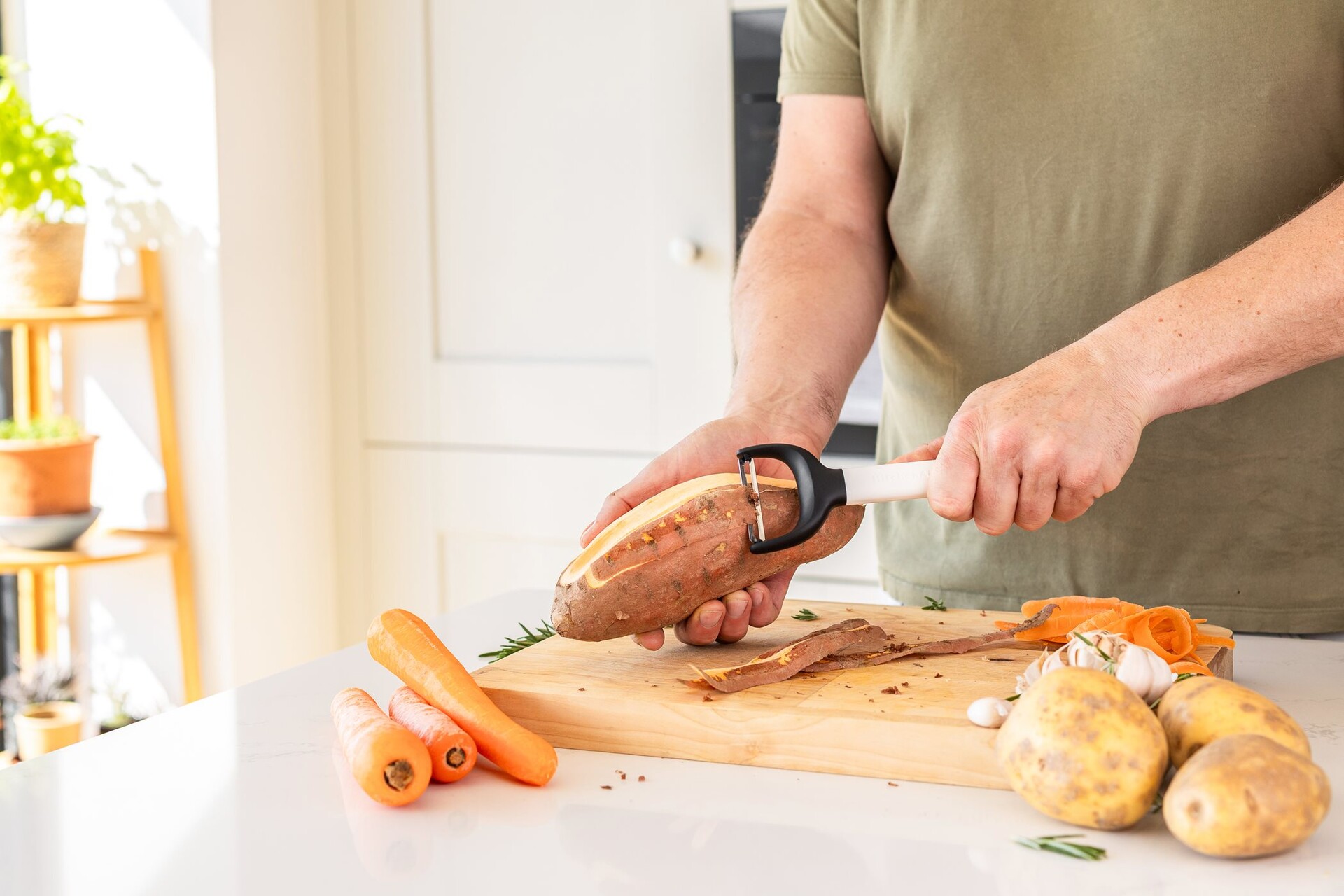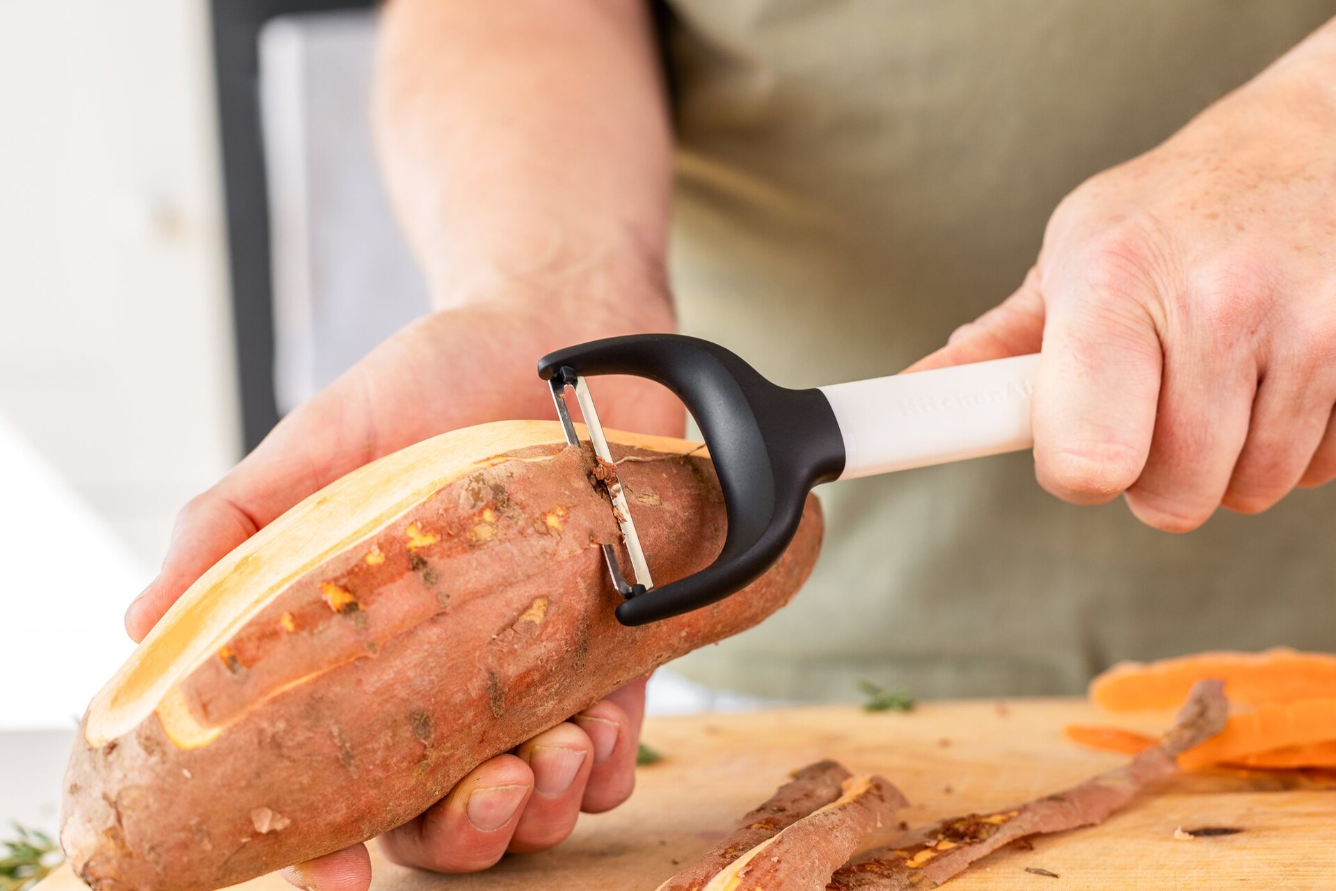 Škrabka je nezbytnou součástí kuchyně. Určena pro rychlé, snadné a bezpečné loupání ovoce a zeleniny.