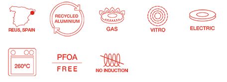 Mini pánev je vyrobená ze 100% recyklovaného trvanlivého a nedeformovatelného litého hliníku, s nepřilnavým povrchem neobsahující PFOA, ani toxické látky.