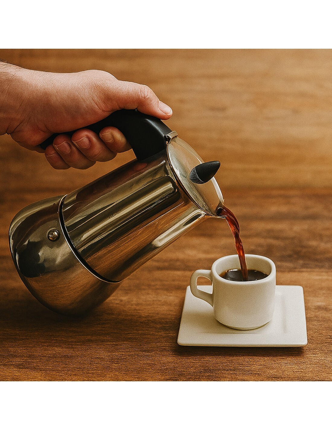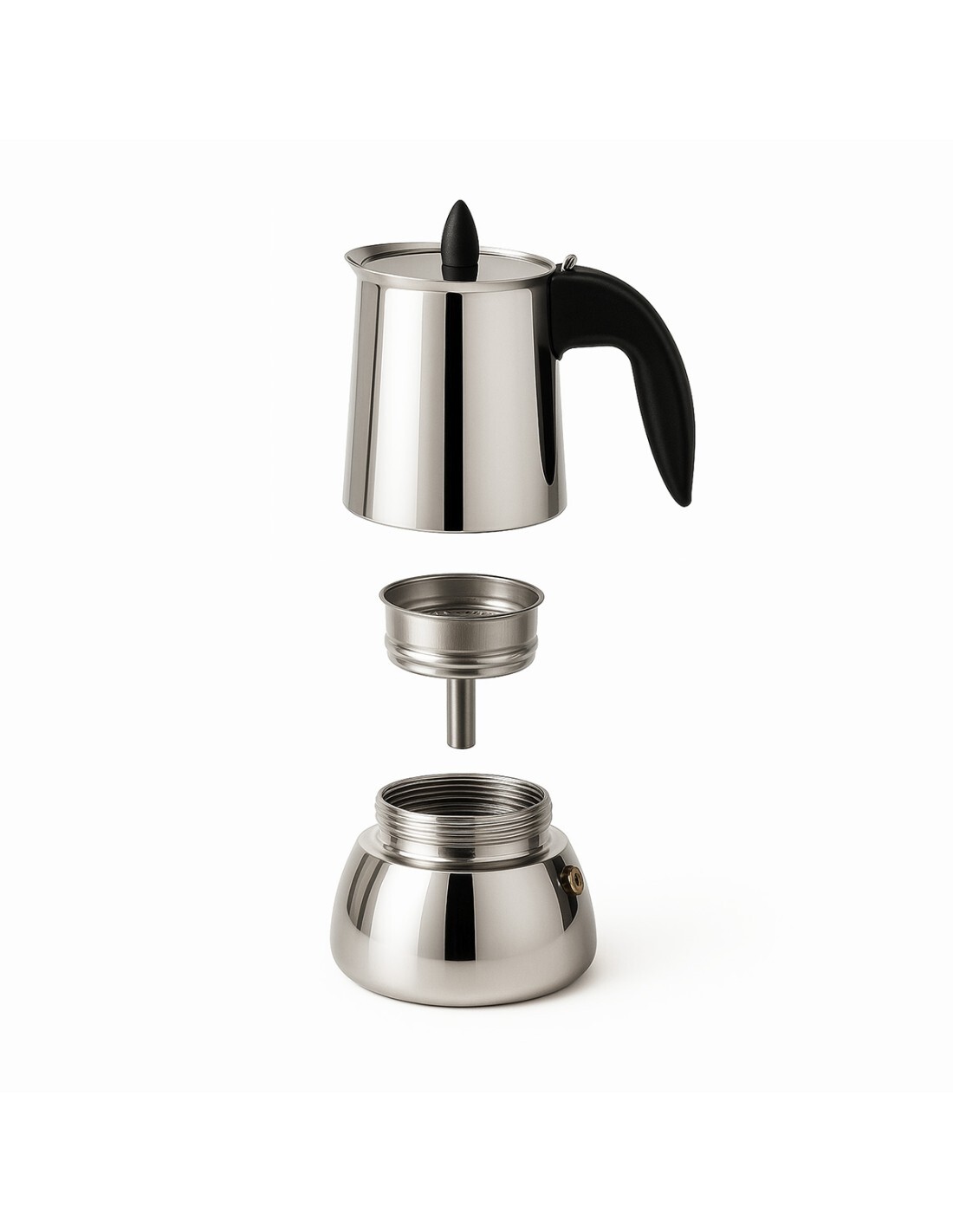 Nerezový kávovar, vhodný na všechny typy varných desek. Jednoduchá příprava chuťově plné kávy.